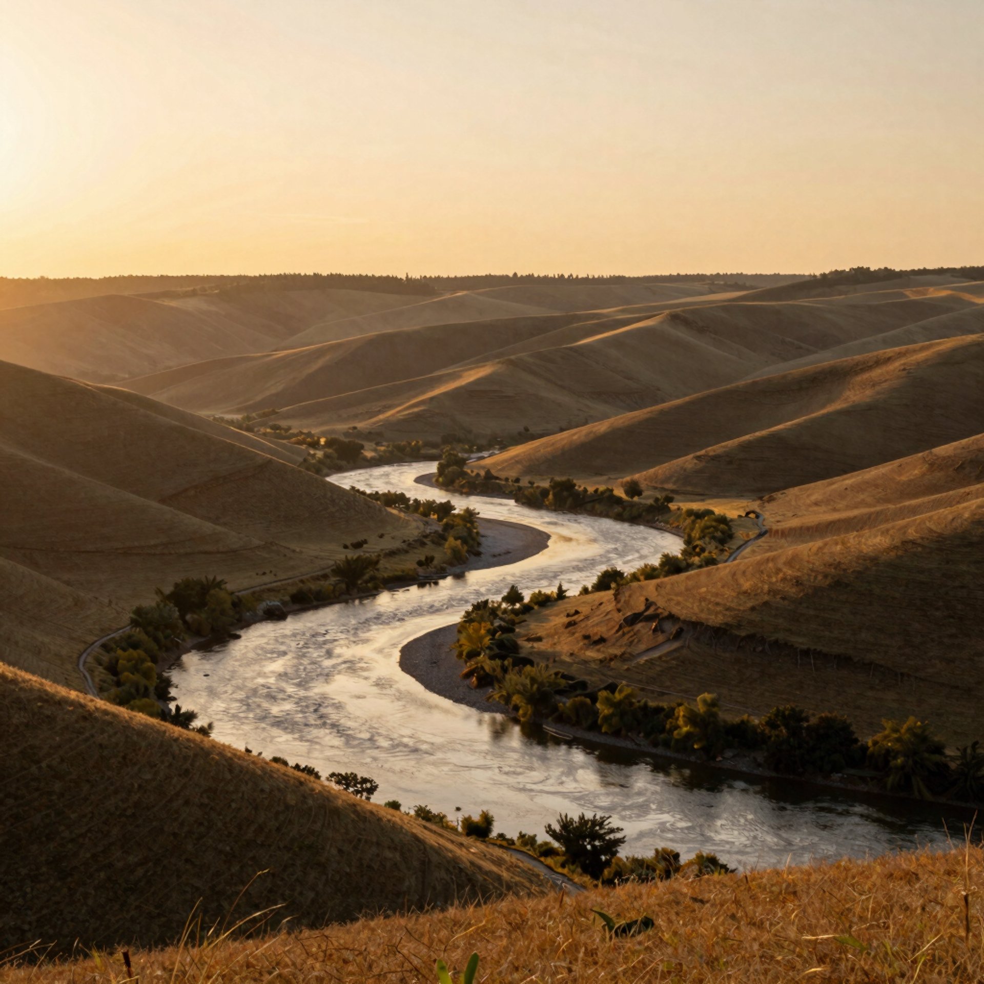 A serene mountain landscape with soft morning light, evoking calm and renewal.